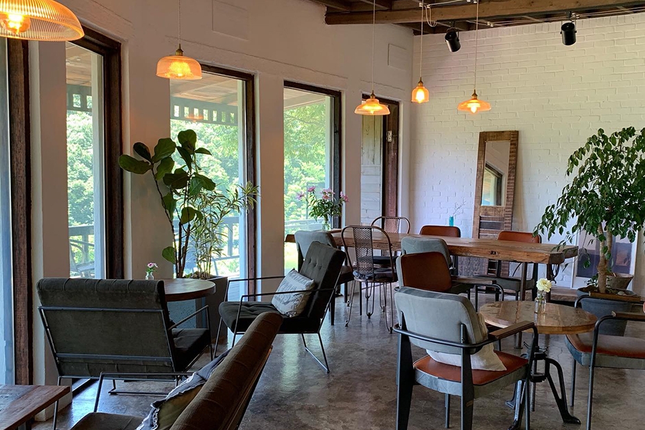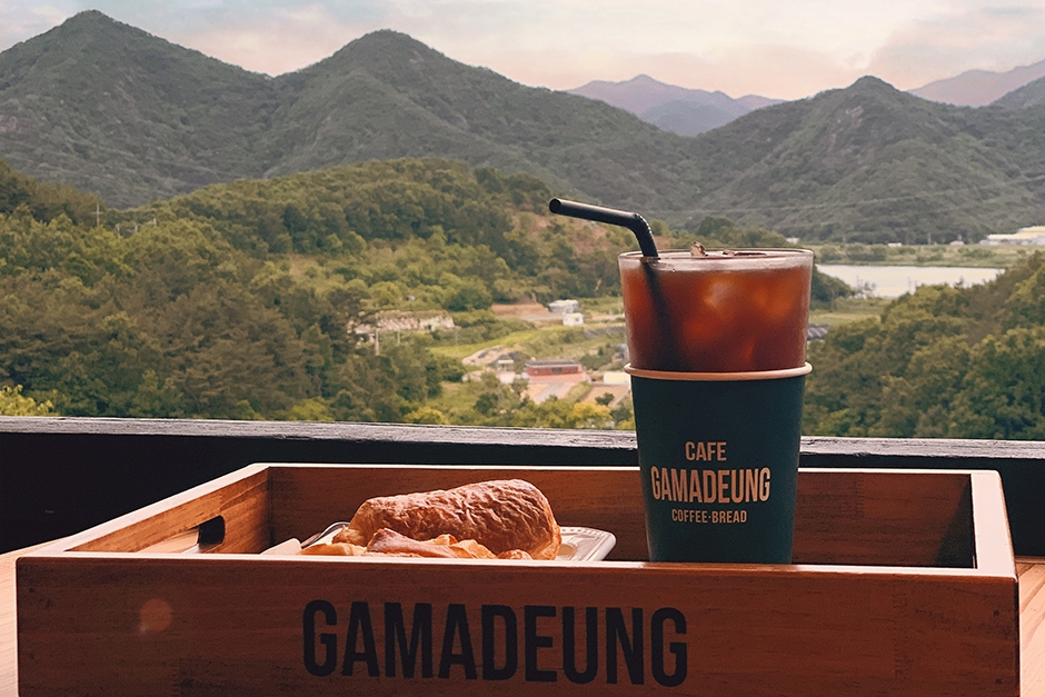 양산 원동면에 있는 카페 가마등은 자연 그대로의 풍경과 잘 어우러진 야외 테라스로 유명하다. 카페에서 내려다보이는 숲속 작은 마을과 강은 한 폭의 그림 같다. 깔끔하고 예쁜 주방에서 직접 만드는 베이커리와 수제청 음료들이 다양하다. 차를 마시며 편안하게 이야기 나누기 좋은 좌식으로 되어 있는 공간도 있어 인기가 좋다. 반려견 동반은 야외 테라스에서만 가능하고 전용 주차장이 있어 편리하게 이용할 수 있다. 석산 근린공원이 인접해 있어 함께 둘러보기 좋다.