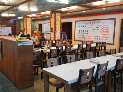학동 몽돌해수욕장에서 걸어서 5분 거리에 있는 몽돌 바다맛선장집은 거제도 향토 8 미 맛집 추천 식당이다. 학동에서 선장인 사장님이 신선한 해산물을 직접 공수해 만든 한 상차림으로 유명한 곳이다. 생선회, 해산물, 갈치구이, 멍게비빔밥, 매운탕을 한꺼번에 맛볼 수 있는 선장페셜이 대표메뉴다. 메인 요리들도 맛있지만 푸짐하게 차려지는 곁들이 찬까지 깔끔하고 맛있다. 단체 100명 이상 수용할 수 있고 가족 단위로도 충분히 이용할 수 있는 넓은 내부 규모다. 홀에는 입식과 좌식 테이블이 있어 편하게 이용할 수 있다. 가게 바로 앞에 주차할 수 있고 뒤쪽으로도 넓은 주차장이 있어 편하게 주차할 수 있다.