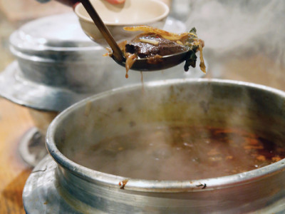 대한민국 기사식당의 대명사라고 할 수 있다. 동네 골목의 작은 음식점으로 시작해 30여 년 만에 주차타워까지 갖춘 건물로 발전을 했다고 하니, 택시 운전기사님들의 남다른 사랑을 짐작하고도 남을 만하다. 자리에 앉으면 즉석에서 익혀 먹는 돼지 불백이 프라이팬에 담겨 나온다. 돼지불백에는 상추가 함께 나오는데 대부분의 고객들이 가위로 잘게 잘라 다른 밑반찬이랑 모두 넣고 볶음밥을 만들어 먹는다. 홀 한쪽에서 끓고 있는 선지 해장국은 원하는 만큼 직접 가져다 먹으면 된다.