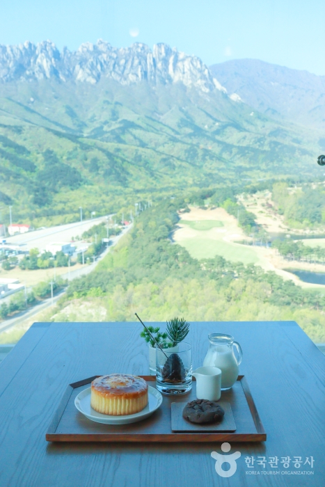 고성과 인제를 잇는 미시령 고개 부근 소노펠리체 델피노 EAST 10층에 위치한 더 엠브로시아는 통유리창 너머로 계절마다 다른 설악산의 풍경을 마주할 수 있는 카페이다. 이곳에서 바라보는 울산바위는 병풍처럼 웅장하고 한 폭의 그림 같다. 카페 구조가 통유리창을 따라 길게 뻗어있고 좌석 간 거리도 넓은 편이라 어느 자리에 앉아도 타인의 방해 없이 울산바위를 바라볼 수 있다. 당일에 갓 구운 베이커리와 향긋한 커피를 마시며 아름다운 풍경을 감상할 수 있다. 더 엠브로시아의 대표메뉴는 매일 정해진 수량만 판매하는 솔방울 라떼&쿠키 세트이고 그 외에도 커피, 차, 생과일주스, 푸딩, 케이크, 빵 등 전 연령대가 즐길 수 있는 디저트가 준비되어 있다.