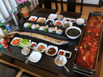 바다원해의 대표 메뉴는 포항물회다. 살얼음이 뜬 새콤달콤한 육수에 광어, 우럭, 강도다리 등을 넣었다. 포항물회를 주문하면 국수 사리, 공깃밥, 매운탕 등이 함께 나온다. 이곳에서는 모듬회도 맛볼 수 있다. 10가지 반찬과 함께 튀김류, 매운탕 등이 상에 오른다. 인근에 환호공원, 영일대해수욕장, 죽도시장 등 포항의 유명 관광지가 많아 식전이나 식후에 연계 관광에 나서기 좋다.