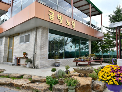 강서구 둔치도 무인 카페 금빛노을이다. 둔치도 마을은 도시의 모습과는 달리 정겹고 운치 있는 모습이 특징적인 곳이다. 입장료를 내고 들어가는 무인 카페이기 때문에 손님들이 알아서 챙겨 가고 정리까지 해야 한다. 아메리카노, 인스턴트커피 및 각종 차 종류가 있고 식빵과 잼, 그리고 뻥튀기가 있어 적당량 가져다 먹으면 된다. 먹은 컵 설거지까지 스스로 해야 한다. 금빛노을에는 본 건물 내부 외에도 크고 작은 하우스들이 몇 개 있고 외부에도 자리가 많아 편하다. 금빛노을은 주차장이 넓은 편이다. 걸을 때마다 정성이 느껴지는 산책로도 있다. 대저 생태공원, 맥도 생태공원이 인접해 있어 함께 둘러보기 좋다.