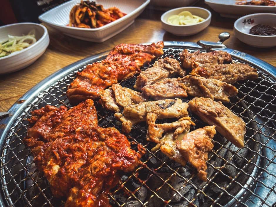와떤길은 오랜 경력의 한식 전문 조리사가 직접 개발한 양념 닭갈비와 수제돼지갈비를 참숯에 구워 참맛을 느낄 수 있는 곳이다. 양념고기뿐만 아니라 생고기도 준비되어 있고 청국장, 갈비탕, 불고기, 냉면 등의 식사메뉴도 있다. 주문 시 정갈한 여러 밑반찬과 다양한 쌈채소가 준비된다. 부족한 반찬은 셀프바에서 원하는 만큼 가져가서 먹을 수 있다.