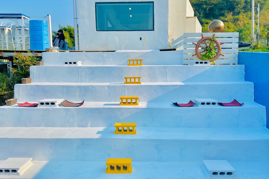 카페 잠시만요는 거제시 장목면에 있다. 시골뷰와 오션뷰는 물론 드라이브 코스로 손색이 없으며 맛있는 커피와 디저트, 브런치를 만나볼 수 있는 곳이다. 잠시만요에서는 푸른 바다와 황포 마을이 한눈에 들어온다. 495㎡ 규모의 대형 자연광 카페로 스튜디오 대관도 가능하고 넓은 주차장도 있다. 하얀 배경에 파란 지붕모양의 산토리니 포토존이 유명하며 곳곳에 사진 찍을 만한 곳이 많다. 황포 에그와플, 부리타츄리, 황포 토스트, 레인보우 베이글 등 다양하고 이색적인 브런치 메뉴가 많다. 인근 지역 연계 관광지로는 황포해수욕장와 거제 두모몽돌해수욕장 등이 있다.