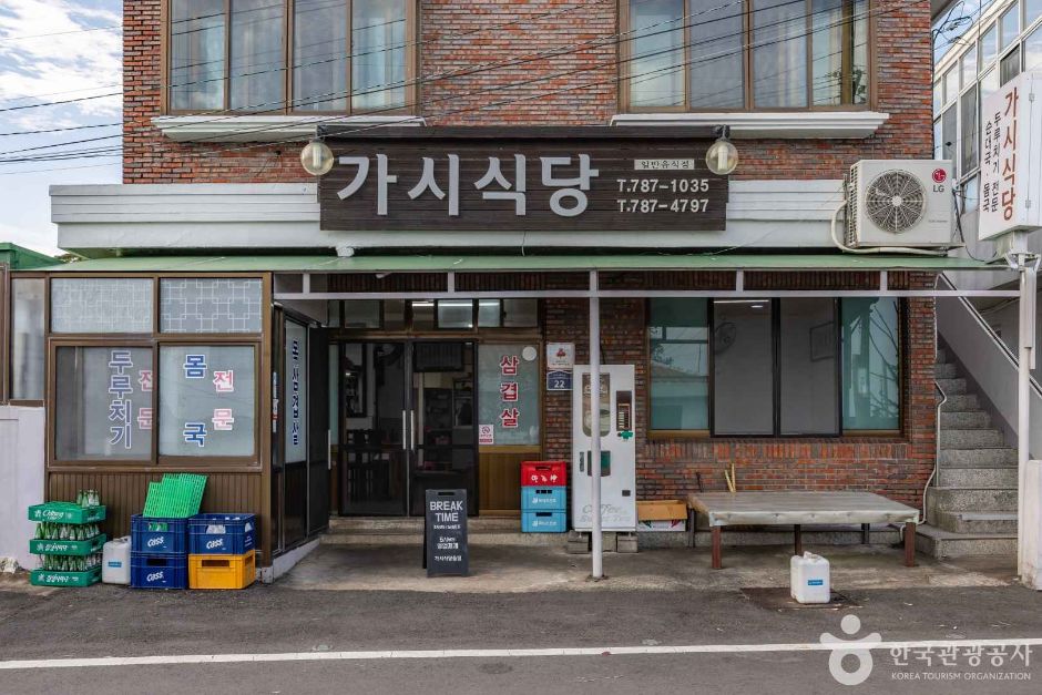 가시식당은 가시보건진료소 인근에 자리 잡은 40년 이상의 전통을 자랑하는 순댓국 전문점이다. 실내는 편안한 가정집 분위기의 입식 홀 구조이다. 돼지 잡뼈를 넣고 우린 육수에 순대와 내장을 말아 뚝배기에 담아내는 순댓국과 철판 위에 은박지를 깔고 볶아먹는 돼지고기 두루치기가 인기메뉴이다.