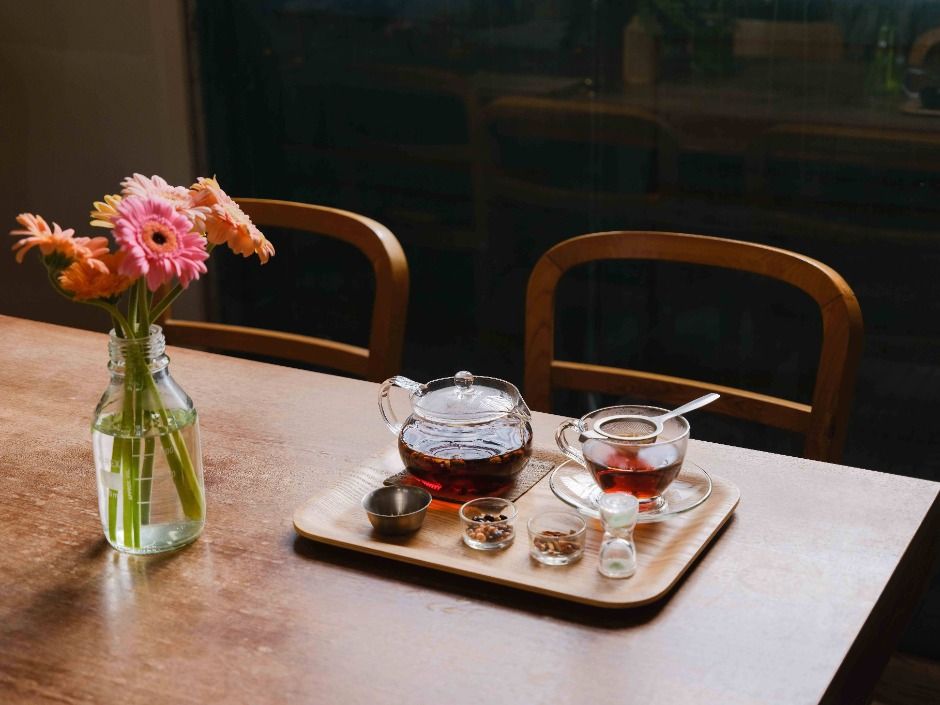 한의사의 다방으로 알려져 있는 티테라피는 나에게 맞는 차를 골라 마실 수 있으며, 차 한잔으로 내 몸을 위로하는 특별한 경험을 할 수 있다. 또한, 따뜻한 물에 발을 담그며 족욕을 즐길 수 있으며, 평일에는 신선한 재료로 건강한 점심식사도 준비된다. 전통재료를 이용한 차에 관심이 있다면 티클래스도 가능하다. 단, 티클래스는 예약제로 운영된다.