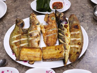 울산광역시 남구에 있는 착한물고기는 신선한 자연산 생선을 550도 이상의 화덕에서 구워주는 생선구이 전문점이다. 고온에 구워 비린내와 기름기가 없는 생선구이를 먹을 수 있다. 모듬생선구이와 화덕구이 메뉴 외에도 갈치조림, 매콤명태찜, 소갈비찜 등 조림과 찜 요리가 풍부하게 준비되어 있다. 반찬이 다양하고 정갈하며, 솥밥과 함께 건강한 식사를 즐길 수 있는 곳으로, 주차 시설이 잘 갖춰져 있어 편리하게 방문할 수 있다.