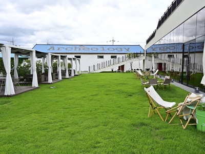 아키올로지는 전라남도 담양군 월산면사무소 뒷편에 위치한 대형 카페이다. 어린이들이 뛰어놀기에도 좋을 만큼 넓은 마당에 텐트와 야외좌석을 비치해 놓았다. 야외 못지않게 넓은 내부에는 책장 가득 메운 도서들과 소품들로 꾸며져 있고 벽면에는 피라미드 안에 그려져 있을 법한 벽화가 있어 고풍스러운 분위기를 자아낸다. 또한, 옥상에 천국의 문이라는 포토존도 마련되어 있다. 다양한 커피, 음료가 준비되어 있다.