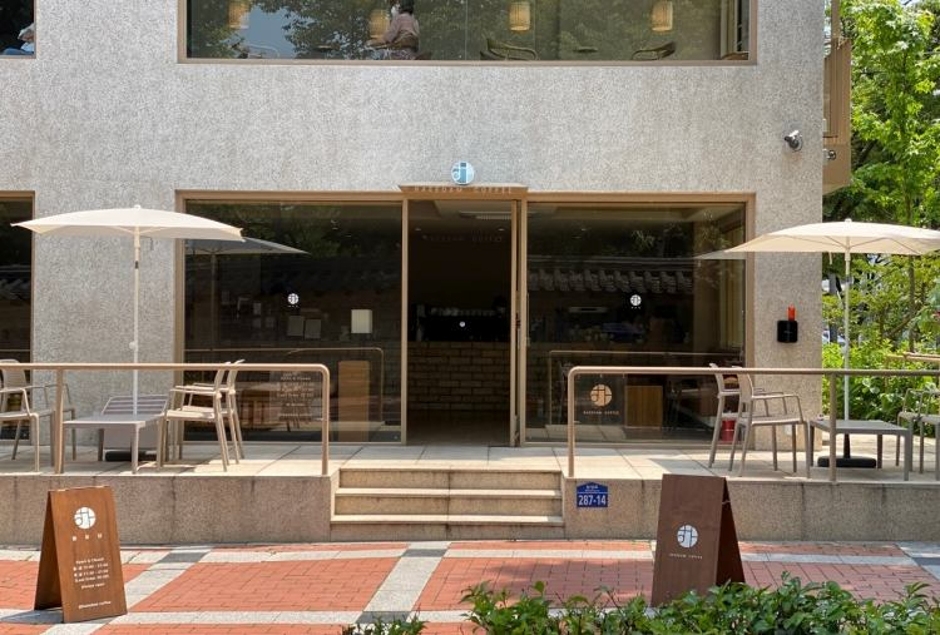 김해의 돌담길이라는 뜻의 해이담은 수로왕릉이 보이는 아늑한 분위기의 카페이다. 카페 전용 주차장은 거리가 좀 있어서 주차 후 다시 카페로 걸어와야 한다. 1층과 2층 모두 통창으로 수로왕릉과 돌담길이 보인다. 내부는 따뜻한 느낌을 주는 조명과 나무 식탁, 나무 의자가 놓여 있고 전체적으로 차분하고 깔끔한 분위기이다. 벽면에 조명과 도자기 장식은 실내를 더욱 돋보이게 한다. 카페에 앉아 울창한 나무와 정자들을 보며 커피를 마시면 마치 한 폭의 수채화를 보는 것 같아 많은 사람이 찾는다. 2층 공간은 노키즈존으로 운영된다.