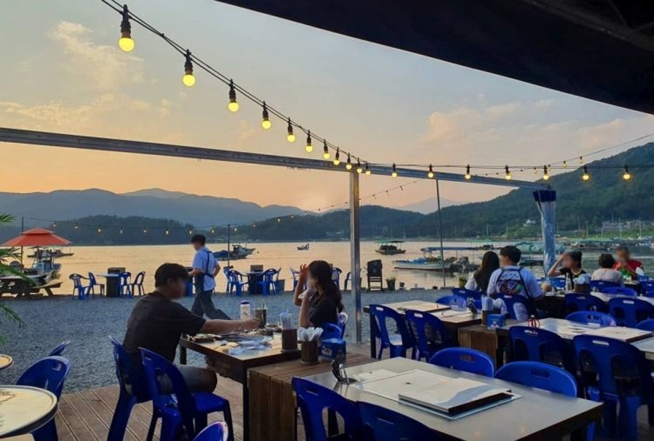 창원 해양관광로에 있는 가고파 생삼겹구이는 바다 풍경을 바라보며 삼겹살을 구워 먹는 맛집이다. 바로 앞 테라스는 인기가 많아서 미리 예약해야만 앉을 수 있다. 평일 당일 예약은 가능하지만 주말 당일 예약은 불가하다. 바다 풍경을 앞에 두고 시원한 바람과 노을을 보며 고기를 먹을 수 있는 가고파 생감겹구이의 주메뉴는 삼겹살과 왕새우, 조개찜, 조개탕으로 세트 주문이 가능하다. 기본 찬은 김치, 생마늘, 쌈무, 채소, 번데기 등이 나오고 추가 반찬과 술, 음료수, 물 등은 셀프로 이용하면 된다.