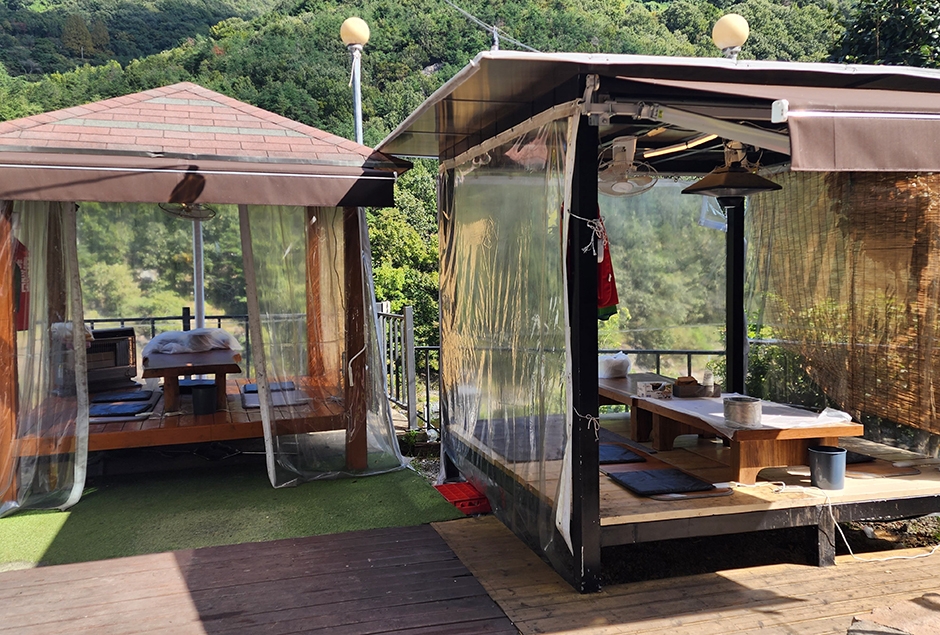 표충사와 얼음골 들어가는 큰 길가에 있는 밀양 맛집 여울목이다. 예약해야 하고 음식값도 선불로 입금해야 하는 곳이다. 자연과 함께 어우러진 밀양 최고의 뷰를 자랑하며 캠핑온 듯한 야외 분위기와 따뜻한 모닥불을 바라보며 맛볼 수 있는 장작불 솥뚜껑 토종닭볶음탕이 인기다. 이곳 식당의 대표메뉴로 제맛을 내기 위해 18호 이상의 엄청난 크기의 닭을 직접 손질하고 양념해 한 시간 이상 끓인다. 실내에서는 자연의 건강한 맛을 담은 영양 솥밥을 맛볼 수 있다. 호박소계곡, 재약산 등이 인접해 있어 함께 둘러보기 좋다.