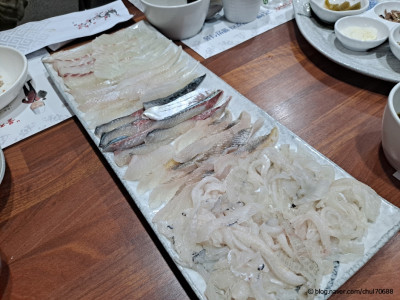 부산 달맞이길에 있는 해운대 하얀 오징어집은 흐물흐물 흘러내릴 정도의 실처럼 얇게 썰어 나오는 오징어회가 특색 있는 해산물 맛집이다. 주문과 동시에 오징어를 얇게 여러 번 포를 떠서 잘게 썰어내는 수작업으로 조리시간이 20분 정도 소요되고, 주말에는 30~40분 정도 예상해야 한다. 이곳 메인 메뉴는 오징어 회지만 오징어 내장과 함께 쪄서 나오는 오징어 먹통도 인기가 좋다. 여러 가지를 맛보고 싶다면 오징어와 활어회, 먹통이 나오는 세트 메뉴가 있어 다양하게 즐길 수 있다. 기본 상차림으로 해물파전, 계란찜, 샐러드, 전복장, 미역국 등이 푸짐하게 나온다. 회뿐 아니라 주류와 어울리는 생우럭탕, 어묵탕, 물회도 있어 식사와 반주를 곁들일 수 있어 회식, 모임 등을 하기 좋은 곳이다. 근처 부산의 멋진 야경을 한눈에 볼 수 있는 해월정도 가까이 있으니 함께 방문해 보는 것도 좋다.