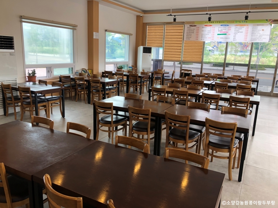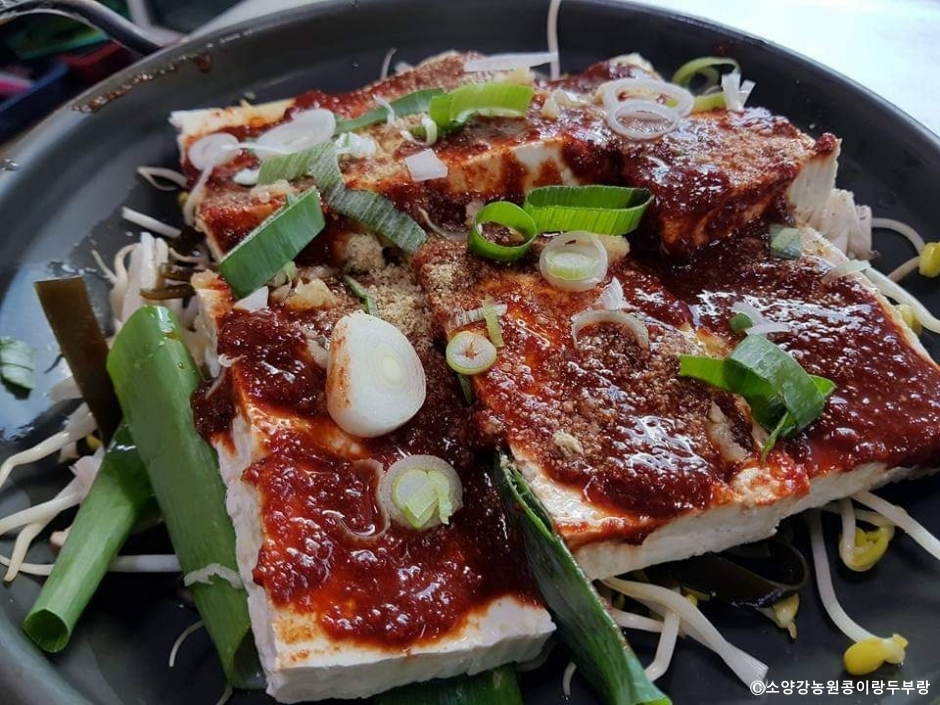 소양강농원 콩이랑두부랑은 강원도 춘천시 신사우동에 있는 두부 전문집이다. 새벽이면 우리 콩을 사용해서 가마솥에 끓여 두부를 만들고 있다. 정성껏 삶아 낸 콩과 두부를 이용해서 상에 내는 모든 음식을 만들고 있다. 두부와 콩이 맛이 있으니 음식도 당연히 맛이 좋다. 식당 내부도 정갈하고 깔끔한 인테리어이다. 차려지는 반찬도 야채와 나물은 모두 제철 재료를 사용해서 차려내고 있다. 재래식으로 두부를 만들고 있어 순두부의 양이 많이 나오지 않아 음식은 일찍 끝날 수 있다. 다양한 TV 프로그램에 소개되어 방문객이 많아 대기가 있을 수 있다. 주차는 매장 앞에 전용 주차장이 있어 편하게 이용할 수 있다.