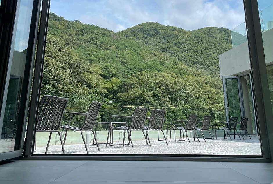 푸른 숲과 시원한 계곡을 품은 카페 아미드포레는 용연공원 바로 인근에 있다. 아미드포레는 ‘숲의 친구’를 뜻하는 불어이다. 이름에서 느껴지듯 숲과 자연스럽게 어우러지는 시원하고 모던한 외관과 인테리어, 통창으로 만들어져 있어 어느 좌석에서건 숲을 관람할 수 있으며 계절에 따라 변하는 창밖의 풍경을 감상하기 좋다. 다채로운 음료와 퀄리티 높은 디저트 메뉴까지 무엇 하나 빼놓을 것 없는 매력 포인트로 가득 찬 공간이다. 규모가 비교적 큰 편으로 시설이 깔끔하고 뷰가 좋아 많은 사람이 방문하고 있다. 전용 주차장이 마련되어 있으며 가까운 곳에 통도 환타지아가 있어 함께 둘러보기 좋다.