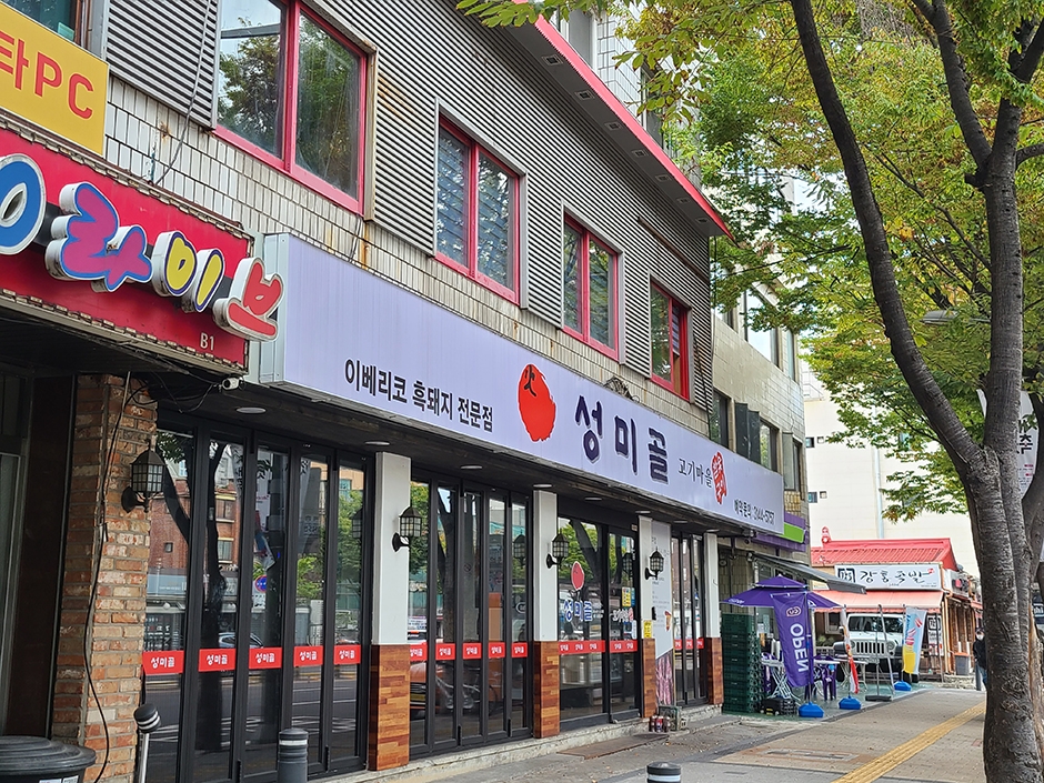 마포구청역 5번 출구에서 도보 3분 정도 거리에 있는 망원동 고깃집이다. 역에서 나와서 직진하면 있다. 성미골 주차장 또는 바로 옆 공영주차장을 이용할 수 있어서 차량을 가지고 방문하기에 편리하다. 이베리코 흑돼지 특수부위와 듀록 꽃삼겹살 등 고품질 고기를 제공하는 곳이다. 고기 자체가 신선하고 부드러워 쌈 없이도 즐길 수 있다. 주변에 성산근린공원, 망원시장 등 다양한 볼거리가 있다.