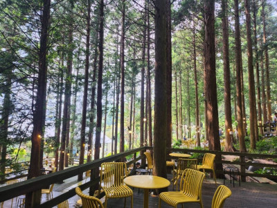 부산 금정산성 마을 근처 편백나무 숲 속에 모던한 건물의 카페이다. 30년이 넘은 세월 동안 가꾸어진 울창한 편백나무 숲과 정원에서 평온함과 쉼을 느낄 수 있다. 계절에 따라 달라지는 자연모습에 계절마다 또 다른 분위기를 느낄 수 있다. 카페 본관은 노출콘크리트와 화이트로 모덤함과 깔끔함 그리고 높은 층고로 시원한 느낌을 받는다. 자연을 좋아하는 어르신부터 활동성이 좋은 아이들까지 다양한 연령대의 고객들이 이용이 가능하다.