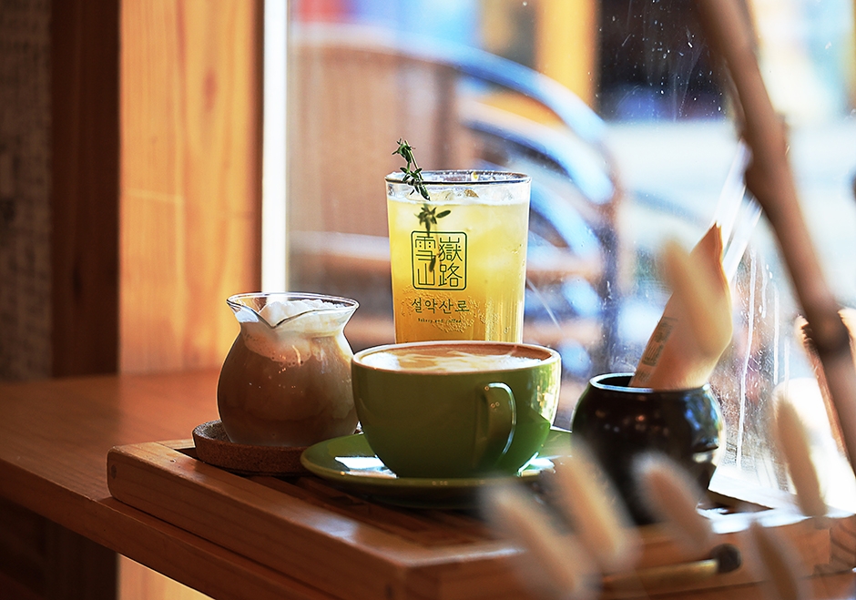 설악산로는 본관, 별채와 푸른 잔디로 덮인 넓은 마당에 이어진 사랑채로 되어 있다. 본관과 안채는 카페로 사랑채는 한복 대여 및 셀프 촬영이 가능한 스튜디오로 운영하고 있다. 한복을 입고 스튜디오 촬영뿐만 아니라 설악산로 구석구석 한옥의 정취를 즐기며 분위기 있는 사진을 찍을 수 있다. 설악산로의 대표적인 메뉴 설악산코코는 코코넛 스무디와 커피의 조화로움을, 시그니처 메뉴인 흑임자라떼는 고소한 흑임자와 커피의 풍미를 느낄 수 있다. 설악산 가는 길에 있으며 외옹치항, 대포항, 설악항과 가깝고 물치해수욕장이 가까이에 있다.