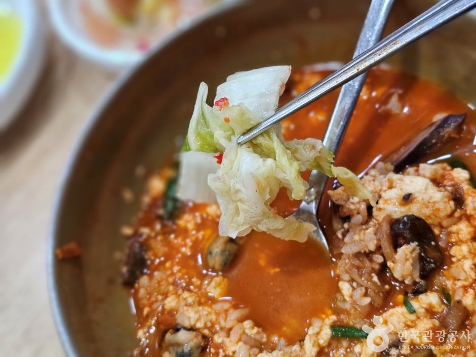 초당두부마을에서 짬뽕순두부를 가장 먼저 판매하기 시작한 식당이다. 매콤한 짬뽕 국물에 고소한 순두부를 가득 넣어 황금비를 맞춘 짬뽕순두부는 오랜 시간이 지나도 여전히 이곳의 시그니처 메뉴다. 김치 또한 별미인데, 순두부를 만들 때 나오는 ‘순물’을 이용해 담근 것이다. 이곳에서 만드는 두부도 별도로 구매 가능하다.