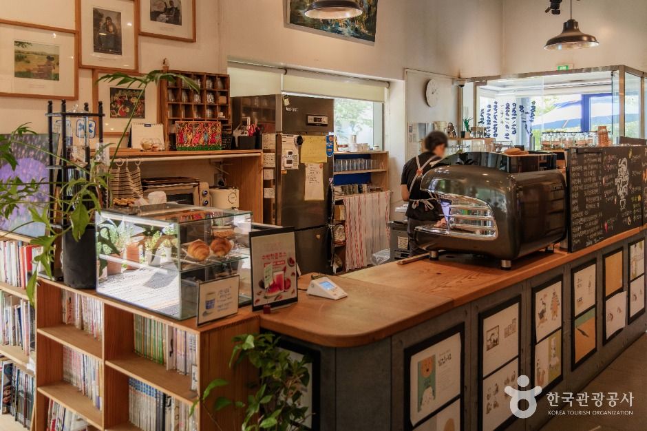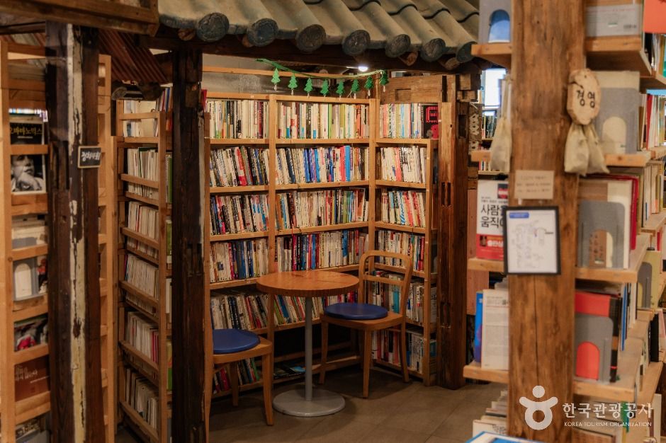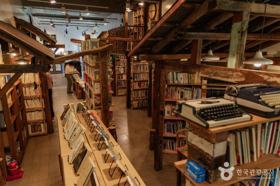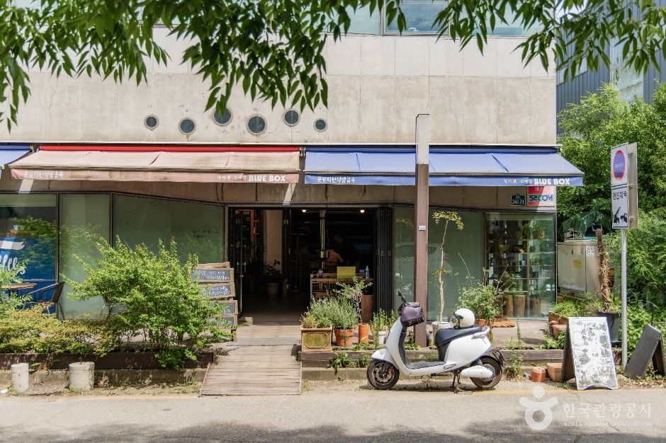 문발리헌책방골목 블루박스는 파주출판단지 헌 책방골목에 있는 고즈넉한 북카페로 카페의 분위기와 내부 인테리어가 독특한 매력을 가지고 있다. 카페 내부에 들어서면 오래된 책들이 뿜는 특유의 향과 카페에서 풍기는 커피 향이 섞여 블루박스만의 색깔이 묻어나는 곳이다. 심플한 현대적인 콘크리트 건물 외관과는 달리 나무로 무심하게 꾸미지 않은 듯한 옛 감성이 물씬 풍기는 내부 공간이 이색적이다. 헌책방 골목을 연상시키는 아기자기한 실내 공간이 편안하게 책읽기에 좋은 곳이다. 사회과학, 예술, 문학 등 다양한 분야의 책들을 저렴하게 구매할 수 있으며 갈대 샛강이 보이는 창가에 앉아 독서와 휴식을 하며 커피 등을 마시기에 좋다.