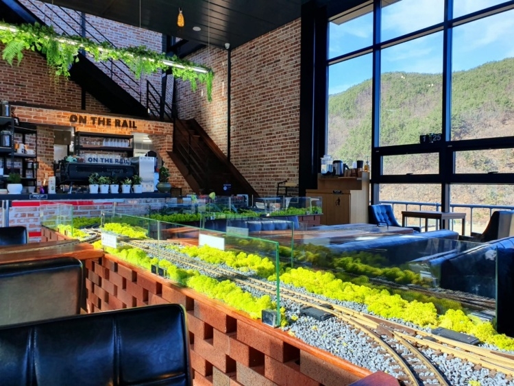 온더레일은 대구광역시 달성군 가창면에 위치한 로스터리 카페이다. 이곳은 기차와 자연과 함께 즐기는 휴식을 슬로건으로 한 카페로, 이러한 슬로건에 맞게 카페 내부 곳곳에는 기차 모형으로 장식을 해두었다. 또한, 통유리창으로 전층에서 시원한 뷰를 만끽할 수 있으며, 루프탑도 운영을 하고 있다. 매일 아침 수제로 구운 빵과 케이크, 로스팅한 원두로 만든 고소한 커피와 여러 종류의 음료가 준비되어 있다. 자연 속에서 향미 가득한 커피와 어디에서도 받아볼 수 없는 기차가 해주는 서빙을 경험해보고 싶다면 방문하는 것을 추천한다.