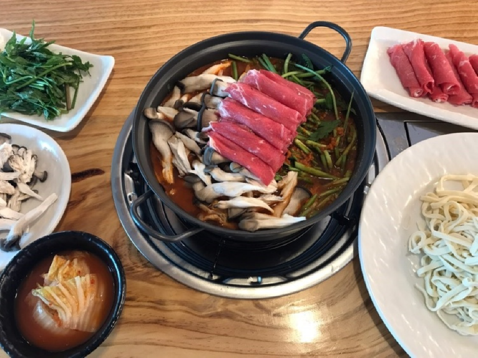 안동 하회 마을에서 공수해 온 상황버섯으로 만든 육수에 부추를 넣어 직접 반죽한 면으로 끓이는 손칼국수로 유명한 곳이다. 샤브샤브는 매운맛과 순한 맛이 있어 기호에 따라 선택할 수 있고 기본 반찬도 셀프 코너가 있어 얼마든지 추가가 가능하다. 보리밥에 열무김치를 넣어 비벼 먹고 난 다음 배추김치를 곁들인 샤브샤브나 칼국수를 즐길 수 있다. 흡연실이 따로 마련돼 있고 커피도 셀프 코너가 있어 식사 후 뒤뜰 카페를 이용할 수 있다.