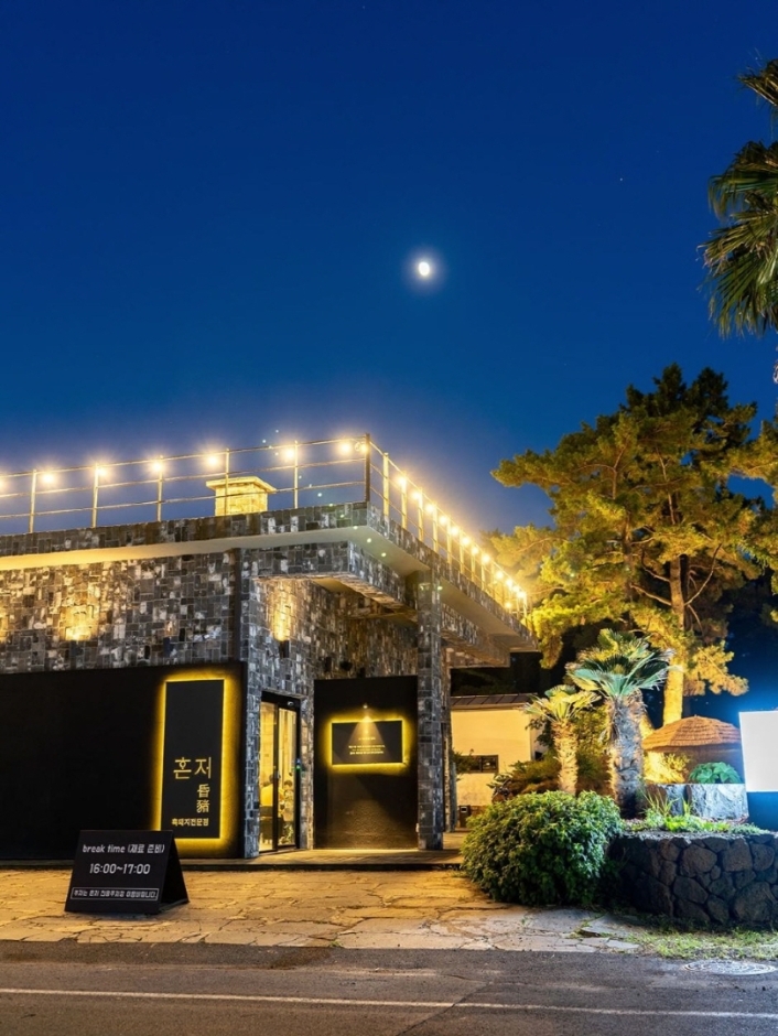 혼저는 흑돼지란 뜻이다. 직접 기르고 운영하는 흑돼지 전문 브랜드다. 두툼하고 부드러운 고기와 다양한 사이드 메뉴가 인기이다. 내부는 돌담과 블랙 인테리어로 어우러진 모던하고 고급스러운 느낌이고, 야외엔 야자수와 잔디 테라스가 있어서 휴양지 감성의 매장 형태다.