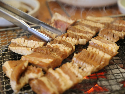 부산 덕천역 10번 출구 근처에 있는 신라농원은 단체석과 개별 룸이 구비되어 있는 참숯석쇠구이 전문점이다. 한우 등심, 갈빗살, 눈꽃살, 양념갈비, 돼지갈비, 돼지 등심 갈비 등 여러 종류가 있어 어린아이부터 어른까지 호불호 없이 먹을 수 있어 가족 외식하러 오기 좋은 곳이다. 신라농원 기본 상차림은 쌈 채소, 양파 간장 소스, 백김치, 장아찌 등이 나오고 추가 반찬은 셀프 바를 이용하면 된다.