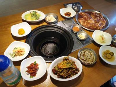 한강껍데기는 망원역에서 도보로 약 12분 정도 거리에 위치하고 있는 고깃집이다. 다양한 고기와 사이드 메뉴를 즐길 수 있는 맛집이다. 삼겹살과 목살은 기본이고, 왕갈비나 소막창 같은 특수 부위도 준비되어 있다. 특히 묵사발은 시원하고 감칠맛이 뛰어나 고기의 느끼함을 잡아주며, 칼국수는 얼큰한 국물이 일품이다.