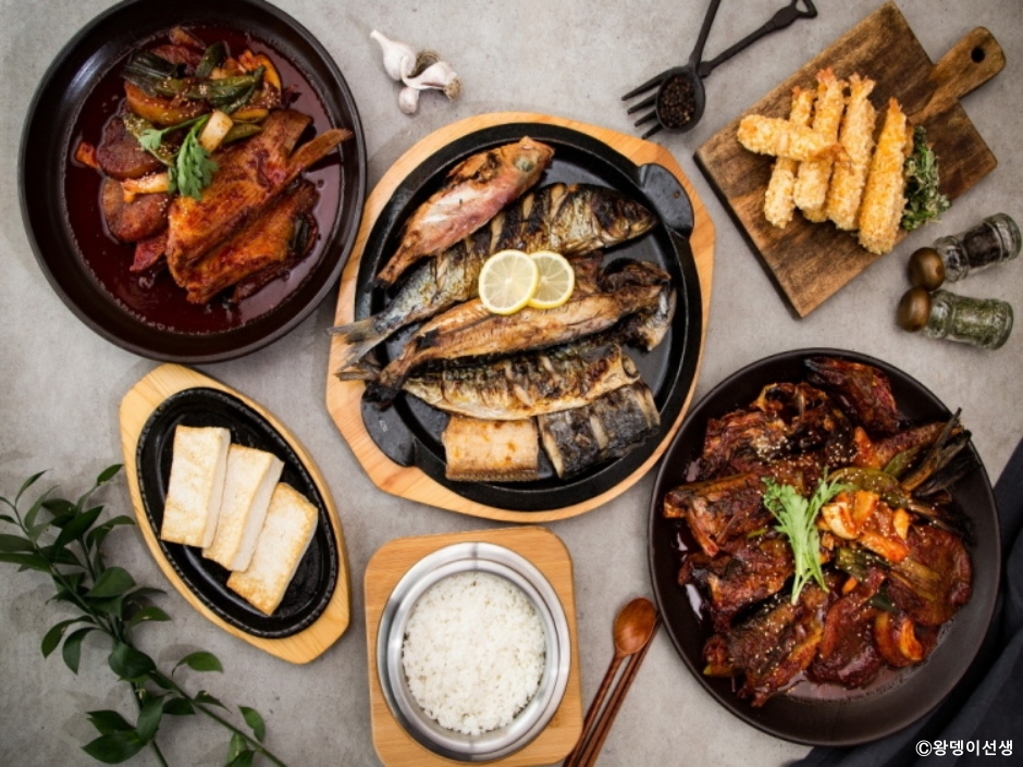 왕뎅이선생은 포천시 소흘읍에 있는 화덕 생선구이와 생선조림 전문점이다. 이 외에도 코다리 조림, 해물찜, 갈치 조림 등의 조림류와 굴전, 부추전, 명태전, 두부구이 등의 사이드 메뉴를 맛볼 수 있다. 통영 출신의 주인이 품질 좋은 생선을 구입해 매장에서 직접 손질한 후 음식을 조리한다. 가장 인기 좋은 메뉴는 화덕 모둠 생선구이와 코다리조림이다. 정식을 주문하면 모둠 생선구이와 함께 6가지의 밑반찬과 미역국이 함께 제공된다. 코다리 조림의 경우에는 김과 콩나물이 함께 나와 콩나물을 얹어 김으로 싸 먹을 수 있다. 흔한 메뉴이지만 어떤 음식이든 재료 자체의 맛에 불맛을 잘 내어 맛이 좋다. 밥은 돌솥 밥으로 지어 밥을 다 먹은 후 녹차 우린 물을 넣어 누룽지로 입가심을 할 수 있다. 추가 반찬은 셀프 바를 이용하면 된다. 매장 앞에 손을 씻을 수 있는 공간이 마련되어 있어 식사 전후에 손을 씻을 수 있다. 넓은 주차장도 갖추고 있어 편하게 이용할 수 있다.