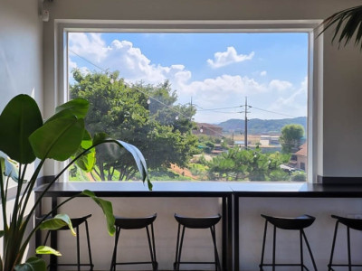 카페 조슈아는 평택 통복동에 있는 디저트 카페다. 건물 오른쪽에 주차 공간이 있는데 협소한 편이라 카페 앞 길가에 주차하면 된다. 카페 조슈아는 낮은 돌담 안에 깔끔한 흰색 외관의 건물과 아담한 정원으로 이루어져 있다. 야외 정원에도 테이블이 있으며 테라스 빈백에 누워서 바라보는 논밭 뷰가 인기다. 내부는 흰색과 우드의 조합으로 깔끔하고 내부에서 통창을 통해 바라보는 정원 뷰는 시원한 개방감을 느끼게 한다.