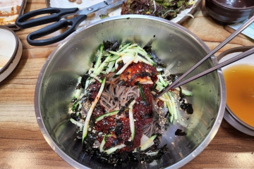 태백 하면 떠오르는 것이 석탄, 즉 연탄이다. 여기에 미식가들이 가장 좋아하는 고기가 고원지대에서 자란 소고기, 이 둘이 만나 태백한우실비가 되었다. 강원관광대학교 초입에 자리 잡고 있는 태백한우골실비식당이 그 원조격으로 태백에서도 최고로 소문나 있다. 이 집은 연탄 불로 굽는 한우 생갈비와 주물럭이 주메뉴다. 적당히 기름기가 밴 두툼한 갈빗살을 구워 먹는데 풍부한 육즙에 씹는 맛이 일품이다. 3년 정도 자란 태백 고랭지의 황소를 바로 도축해 가져오기도 하거니와 3일가량의 저온 숙성으로 고기 맛을 좋게 하는 게 이 집 고기 맛의 비결이다. 고기 외에도 태백 한우골은 된장찌개가 맛있기로도 정평이 자자하다. 집에서 직접 담근 된장에 무와 청국장을 넣고 두어 시간 정도 미리 끓여두었다가 필요만큼만 덜어 한 번 더 끓인 다음 상에 내놓는다. 배추 겉절이, 물김치, 고추장아찌, 부추무침, 계란말이 등 8가지의 밑반찬도 깔끔하다.