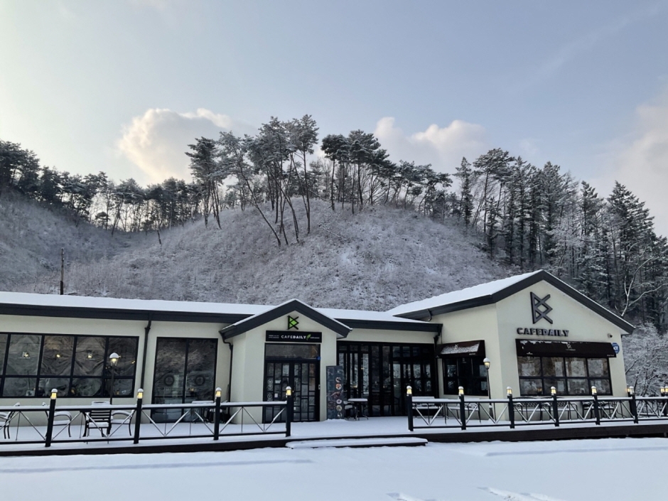 카페 데일리는 자연을 배경으로 하고 있어 계절의 바뀜에 따라 시시각각 달라지는 자연의 풍경을 보고 느낄 수 있다. 야외 데크 및 잔디밭 테이블에서 여유롭게 휴식이 가능하고 실내 또한 많은 식물들이 있어 푸르른 분위기를 조성한다. 휴식하기 편한 좌석과 단체석, 넓은 주차장이 있다. 시그니처 음료와 직접 담근 수제청 차를 맛볼 수 있으며 그 외에도 다양한 음료와 디저트가 준비되어 있다. 또한 편의점 코너가 있어 가볍게 드시고 싶으신 분들께서 이용 가능하다.