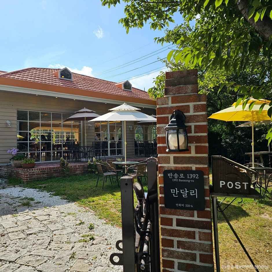 만달리는 부산 기장에 있는 브런치카페로 한적한 분위기 속에서 프레시한 브런치를 즐길 수 있는 곳이다. 브런치를 포함해 음료 메뉴도 다양해 데이트 코스나 나들이 장소로도 인기가 높고 캐치테이블로 원격 웨이팅이 가능한 곳이다. 주변 관광지로 기장 용소웰빙공원이 있다. 유럽 느낌의 외관에 야외 정원이 넓게 있어 날씨 좋은 날에는 야외 테이블 인기가 가장 좋으며 애견 동반도 가능한 곳이다. 대표 메뉴는 클램 차우더 수프와 하우스 포카치아로 조갯살과 감자가 듬뿍 들어간 클램 차우더 수프이다.