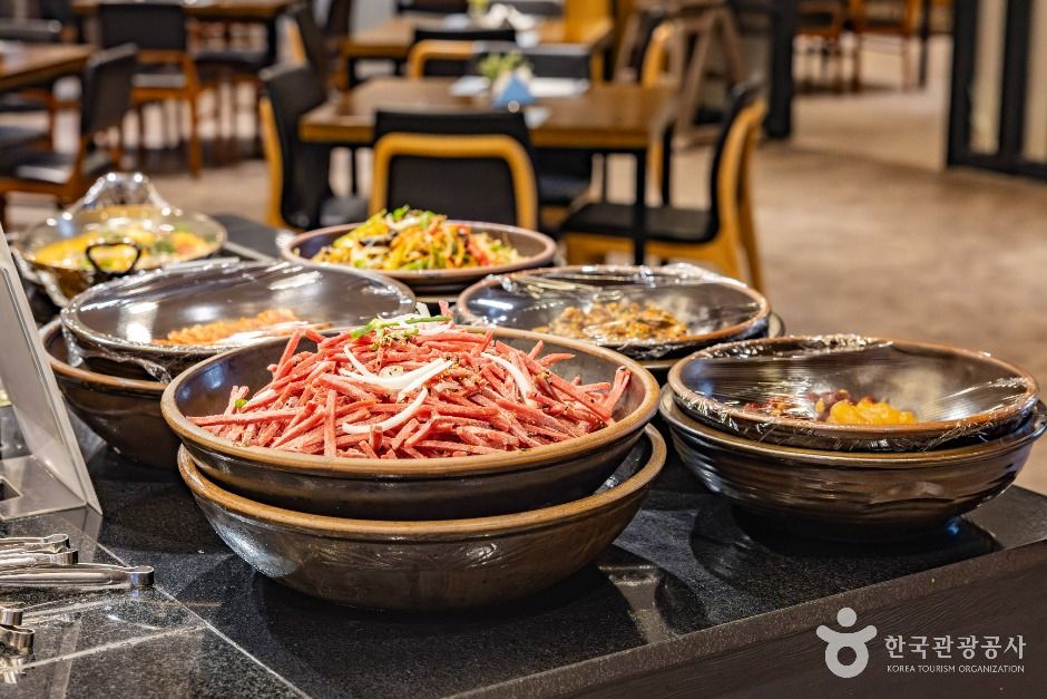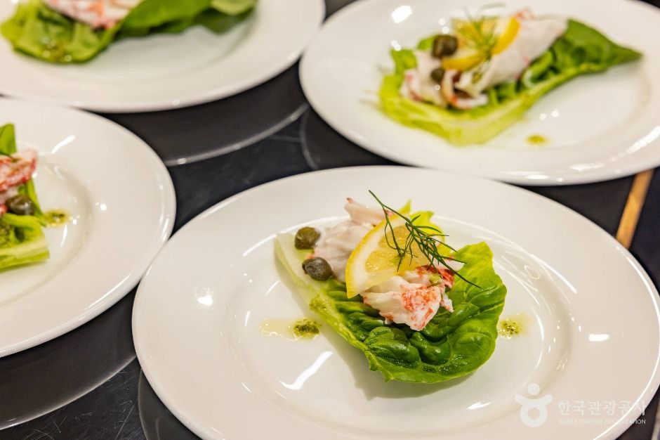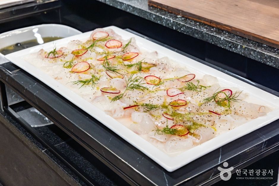 마리나 블루키친은 부산 해운대 마린시티에 위치한 프리미엄 상설 뷔페 레스토랑이다. 신선한 제철 식재료를 활용한 다양한 한식과 글로벌 요리를 선보인다. 약 200여 가지에 달하는 메뉴는 채식, 글루텐프리 등 다양한 식단을 고려해 구성되어 외국인 방문객에게도 만족도 높은 식사를 제공한다. 특히 한국의 전통적인 맛을 현대적으로 재해석한 메뉴들이 인상적이며, 해산물 요리와 라이브 섹션에서는 현장에서 조리되는 생생한 음식을 즐길 수 있다. 마리나 블루키친은 단순한 식사가 아닌, 한국 식문화와 환대를 함께 경험할 수 있는 공간이다.