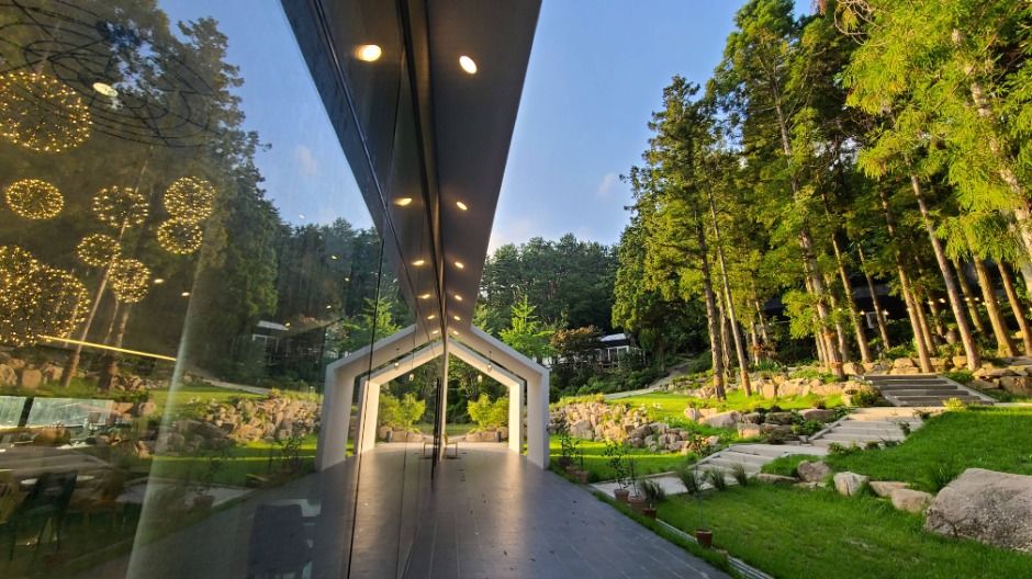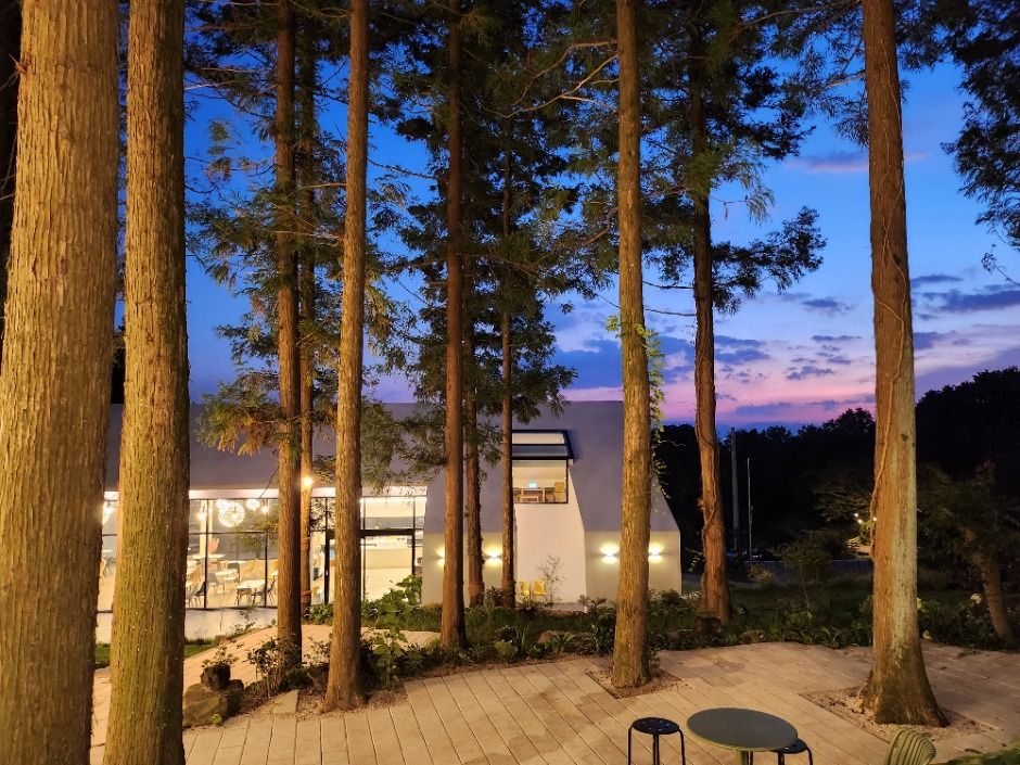 부산 금정산성 마을 근처 편백나무 숲 속에 모던한 건물의 카페이다. 30년이 넘은 세월 동안 가꾸어진 울창한 편백나무 숲과 정원에서 평온함과 쉼을 느낄 수 있다. 계절에 따라 달라지는 자연모습에 계절마다 또 다른 분위기를 느낄 수 있다. 카페 본관은 노출콘크리트와 화이트로 모덤함과 깔끔함 그리고 높은 층고로 시원한 느낌을 받는다. 자연을 좋아하는 어르신부터 활동성이 좋은 아이들까지 다양한 연령대의 고객들이 이용이 가능하다.