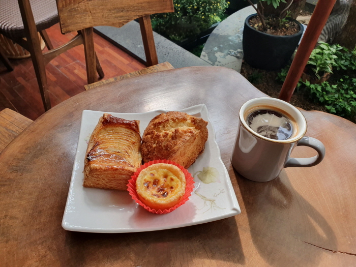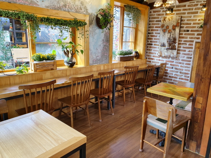 한옥의 아름다움을 고스란히 간직하고 있다. 오래된 감나무를 살리는 인테리어로 방문하는 고객들로 하여금 편안함과 감동을 드리고 있는 카페이다. 신선하고 맛있는 사과로 만든 애플파이, 발효버터를 사용한 스콘과 에그타르트는 감꽃당에서만 만날 수 있는 시그니처 메뉴이다. 매장 내에 포크와 나이프를 제공하지 않는 대신 직원분이 직접 잘라주고 물티슈를 제공해 준다. 밖에 산미가 풍부한 커피와 다양한 음료 등을 만날 수 있다.