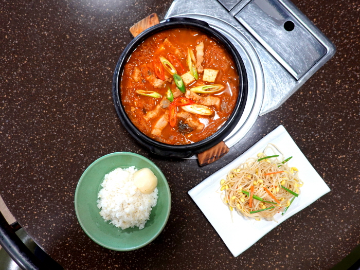 한국인의 소울푸드인 김치찌개 단품만을 판매하는 곳이다. 2년 묵은 묵은지와 담백한 돼지고기의 환상적인 조화는 숟가락을 놓을 수 없게 만든다. 밥과 반찬은 셀프바에서 무료로 추가이용이 가능하다. 매장 테이블은 대부분 원형탁자 형태로 구성되어 있다. 연중무휴로 24시간 영업 중이라 근처를 지나는 여행객들의 방문이 끊이지 않는다.