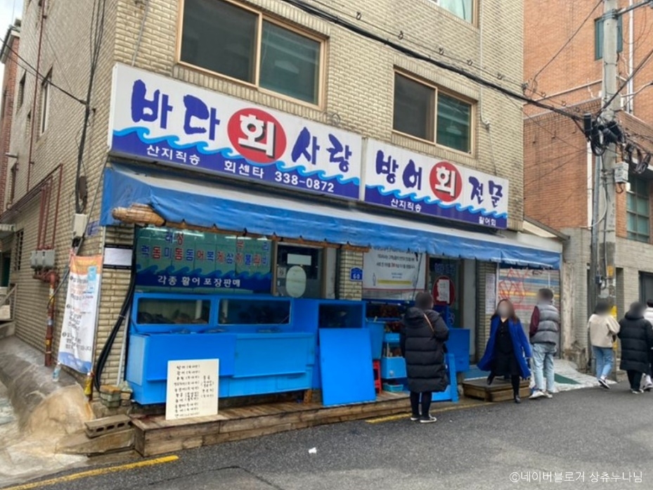 바다회사랑 본점은 홍대입구역 2번 출구에서 도보 2분 거리에 있는 횟집이다. 줄전갱이, 참돔, 연어 등 다양한 회와 함께 붕장어구이, 산낙지, 해물라면 등 다양한 메뉴를 제공한다. 내부는 아담하면서도 깔끔하고 고급스러운 분위기를 갖추고 있으며, 기본으로 제공되는 산낙지는 고소하고 신선하여 인기가 많다.
