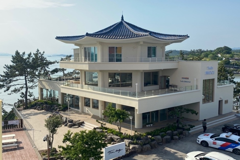 트윈브릿지는 진도대교와 울돌목 바로 옆 해남과 진도를 잇는 자리에 있다. 카페에서 울돌목과 쌍둥이 다리를 감상할 수 있어 트윈브릿지라는 이름 붙였다. 주말이면 2,000명이 방문하는 명소로 목포, 광주 등 가까운 도시에서 많이 찾으며 진도 관광객들의 방문도 이어진다. 카페 콘셉트를 제주도 휴양지로 잡고 휴양지 느낌이 날 수 있도록 시원하게 통창을 내 오션뷰가 펼쳐진다. 울돌목 회오리 풍경은 관광객들의 발길을 잡는 포인트다. 대표메뉴는 바닐라빈라떼이고 그 외 돌체라떼, 딸기라떼, 애플 오렌지 아이스 티, 오션레몬에이드, 애플망고에이드 등도 있다. 디저트 카페로 불릴 만큼 케이크, 빵 등 디저트류가 다양하게 준비되어 있고 인근에 이충무공승전공원, 울돌목스카이워크, 해양에너지공원 등이 있다. 반려동물은 동반이 불가능하다.