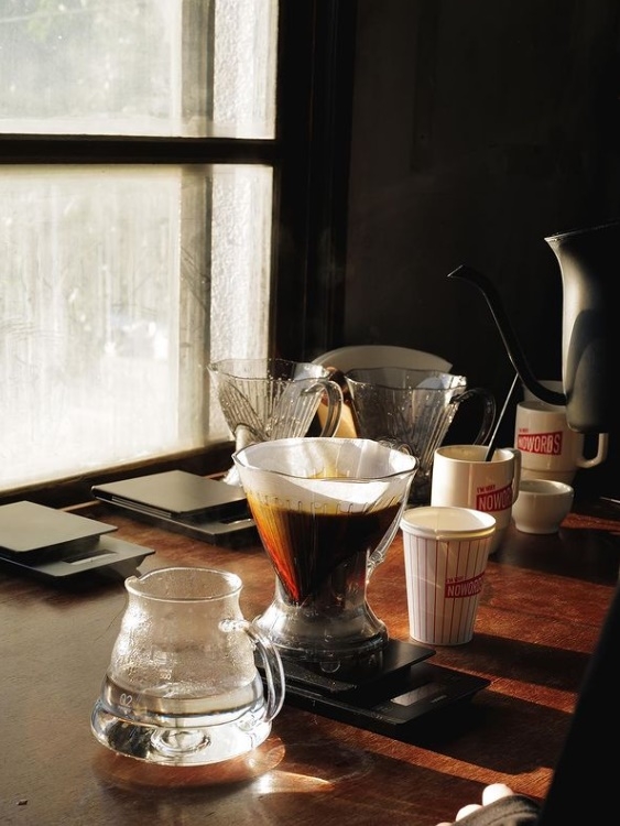 No Words는 경상북도 경주시 황남동에 있다. 황리단길로 불리는 곳에서 가장 유명한 카페로 2층으로 되어 있다. 빈티지한 느낌으로 꾸며 놓았는데 빈자리를 확인 후 2층에서 주문을 하면 직원이 직접 자리까지 커피를 가져다준다. 대표 메뉴는 에스프레소지만 롱블랙, 카푸치노, 라떼가 유명하고 특히 라테에 아이스크림을 얹어 주는 엑설런트 라뗴가 인기다. 주말엔 웨이팅이 심한 편이고 1인 1 음료 주문이 필수다. 경주 IC에서 가깝고 인근에 첨성대를 비롯해 경주 교촌한옥마을, 동궁과 월지가 있다.