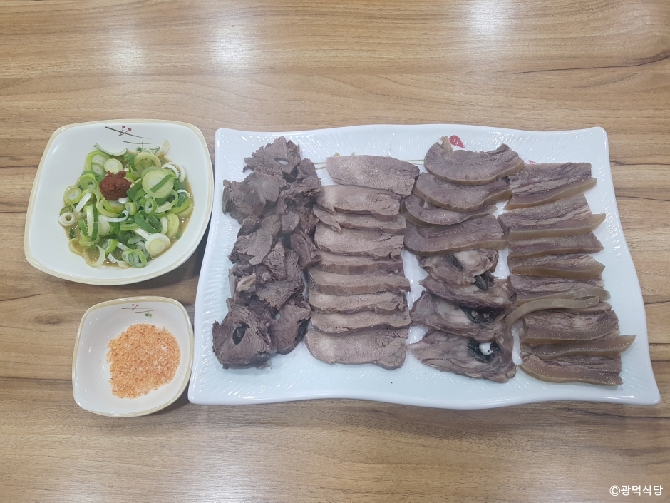 광덕식당은 강릉시 경강로에 있는 소머리국밥 전문점이다. 주메뉴는 소머리국밥, 소머리국밥에 순두부를 넣은 소순이, 순대국밥, 소머리수육 등이다. 반찬은 배추김치와 깍두기인데 맛이 매우 좋다. 국밥에 딱 어울리는 반찬이다. 소머리 수육을 주문하며 국물이 따로 나온다. 공깃밥을 시켜 식사를 할 수도 있다. 냄새가 전혀 없고 깔끔한 소머리 수육 맛과 시원한 국물이 일품이다. 주차는 매장 앞에 전용 주차장이 있어 이용이 편리하다.