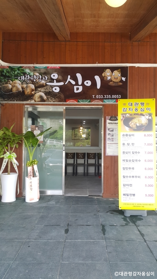 대관령감자옹심이는 강원도 평창군에 있는 감자옹심이 전문점이다. 감자옹심이로만 끓인 순 옹심이, 옹심이와 칼국수를 섞어 만든 옹심이 칼국수, 옹심이와 칼국수와 만두를 끓인 옹칼만 등 옹심이로 만들 수 있는 다양한 메뉴가 있다. 곁들임 메뉴로 바삭한 감자전, 찰수수 부꾸미, 메밀전병 등이 있다. 음식도 맛있고 가격도 합리적이라 부담 없이 강원도 토속음식을 골고루 맛볼 수 있다. 매장 앞에 넓은 전용 주차장이 있어 이용이 편리하다.