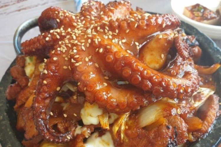 제주 산방산 맛집으로 알려진 순천미향제주산방산 본점은 문어, 전복, 흑돼지를 넣어 만든 제왕삼합이 대표 메뉴이다. 제주 은갈치조림, 은갈치구이, 고등어구이, 전복구이, 전복해물뚝배기, 성게미역국도 있다. 돌냄비에 흑돼지, 전복, 치즈, 돌문어가 크게 들어가 음식이 나오면 푸짐한 양에 눈으로 한번 놀라고 맛으로 반한다는 제주순천미향 제왕삼합은 재료가 신선하고 과일 소스로 만들어 모두 다 좋아할 수 있는 맛이다.