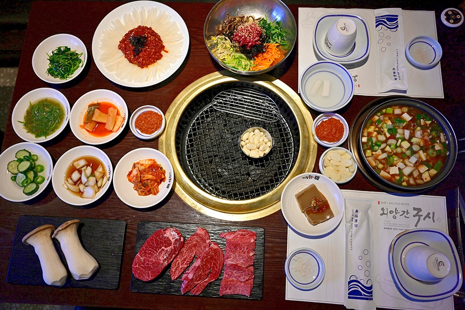 한우 전문점 외양간구시는 고기를 굽고 난 불판에 끓여 먹는 된장찌개가 유명하다. 품질 좋은 한우와 국내산 김치만을 사용하며 특히 직접 만든 된장과 거창산 채소를 이용하여 된장찌개를 끓여준다. 여러 개의 룸이 마련되어 있어 소모임을 하기에 좋다. 또한 노인을 배려해 의자 겸 침상이 준비되어 있다. 식당 이용 시 정육판매장에서 부위별로 팩에 포장된 고기를 골라 고깃값을 계산 후 상차림이 나오는 식당으로 가면 된다. 식사 후 콩나물이 들어간 시원한 잔치국수도 나온다.