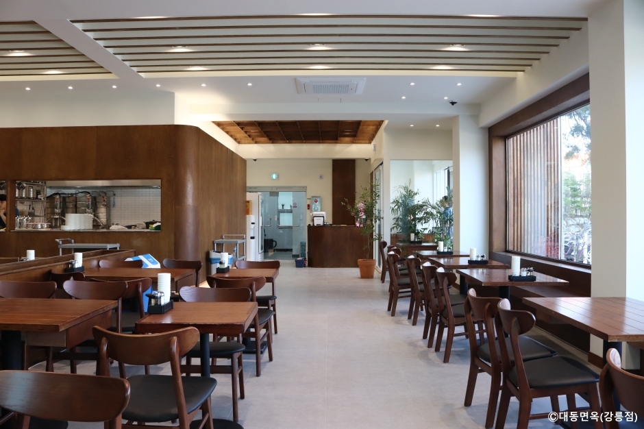 대동면옥 강릉점은 강릉시 교동에 있는 면 전문점이다. 50년 넘게 막국수 냉면집을 주문진에서 운영하고 있는 대동면옥이 강릉에 새롭게 연 식당이다. 메뉴는 본점과 동일하게 새콤달콤한 가자미 회가 올라간 회비빔 막국수, 회비빔 냉면이 주메뉴이다. 물론 물 냉면과 물 막국수도 있다. 보들보들 부드럽게 삶아진 수육과 가자미회 무침을 같이 먹는 맛이 훌륭하다. 새로 오픈한 매장이라 인테리어가 현대적이고 깔끔하다. 대기가 많은 식당이라 도착하면 바로 예약하고 차례를 기다려야 한다. 전용 주차장을 갖추고 있어 이용이 편리하다. 모든 메뉴가 포장이 가능해서 매장이 붐빌 때는 포장해서 갈 수도 있다.