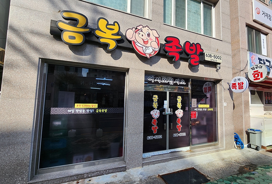 거제시 장승포동에 있는 금복족발은 쫀득한 식감이 매력적 족발 맛집이다. 깔끔한 외관과 차분한 분위기를 연출하는 인테리어가 눈에 띈다. 매일 직접 삶는 100% 국내산 족발과 함께 제공되는 막국수, 날치알 주먹밥 및 다양한 구성의 요리를 맛볼 수 있다. 포장과 배달도 가능하며 진공으로 포장해서 위생적이고 냄새도 나지 않아 깔끔하다. 콜라젠을 가득 머금고 있는 족발 껍데기와 살코기를 적당한 비율로 썰어서 먹기 좋게 만든 반반 족발이 인기가 좋다. 전용 주차장이 있으며 장승포해안로, 장승포 수변공원 등이 인접해 있어 함께 둘러보기 좋다.