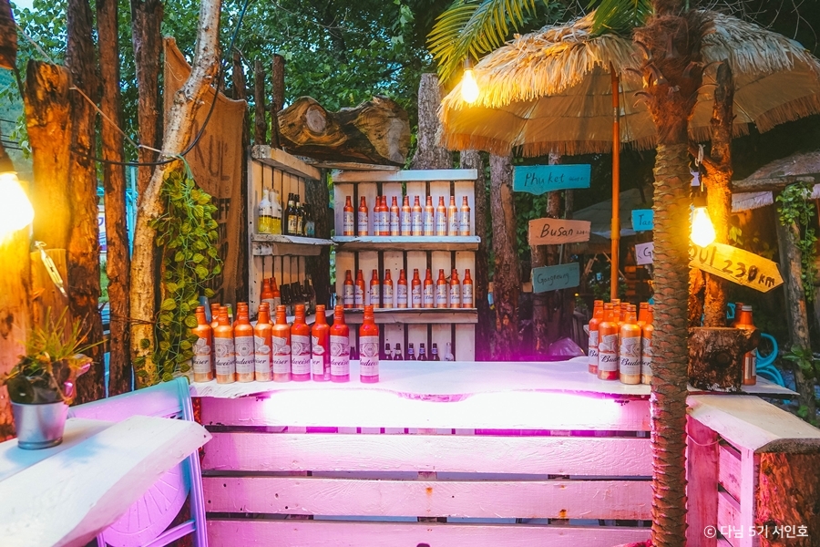 카페 인테리어는 마치 동남아 휴양지를 연상케 한다. 야자수 나무와 파라솔 등과 아기자기한 소품들로 꾸며져 있다. 시즌에 따라 바뀌는 소품도 색다른 볼거리다.