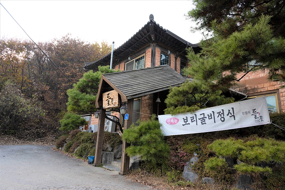 들꽃은 천안시 유량동에 위치한 가든 분위기의 한식집이다. 이곳의 대표메뉴는 한상차림 코스요리와 곤드레나물밥과 훈제오리정식, 불고기 정식 등 다양한 한식메뉴가 준비되어 있다. 매장 내부에는 입식좌석이 많이 배치되어 있어 단체 손님이 이용하기에도 적합하며 유아의자도 따로 준비되어 있어 아이가 있는 가족단위 방문하기에도 좋은 식당이다. 그리고 식당 전용 대형 주차장이 완비되어 있어 주차걱정 없이 편안하게 식사가 가능하다.