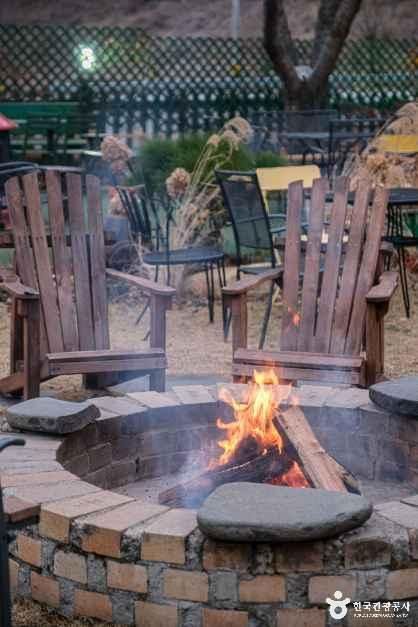 완주 대둔산 카페 나마스테는 2층으로 된 건물로 입구에서부터 카라반, 캠프파이어 공간, 해먹 등으로 꾸며져 있는 외부를 보면 아웃도어를 즐기는 주인장의 손길이 느껴지는 곳이다. 히말라야 등반을 했던 이기열 대장이 만든 카페로, 내부 곳곳에서 네팔, 히말라야의 감성을 느낄 수 있다. 실내는 통창의 모던한 인테리어이고, 야외에 테이블도 많아 커피를 마시며 맞은편에 대둔산을 한눈에 담을 수 있다. 저녁에는 카페 앞마당에서 불멍을 즐겨도 좋다. 360도 전창으로 되어 있는 2층은 어딜 앉아 있어도 대둔산을 볼 수 있기 때문에 사계절 변화하는 산의 아름다움을 마음속에 새길 수 있다. 오토바이 주차공간과 편의시설이 마련되어 있어 라이더들에게 인기가 많다.