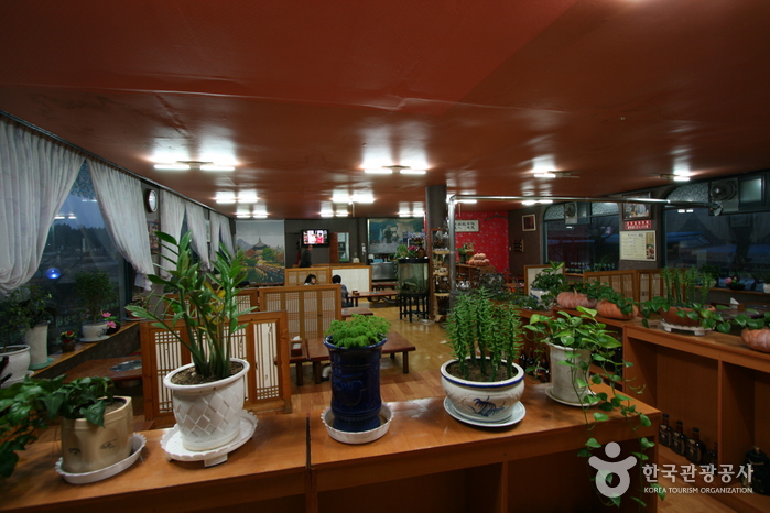 갈비는 비법 양념에 72시간 이상 푹 숙성시켜 육즙이 풍부하고 단짠의 조화를 완벽히 이루는 맛을 완성한다. 매일 아침 텃밭에서 직접 기른 신선한 야채와 전통 기법으로 숙성시킨 수제 된장, 쌈장, 간장 양념으로 만든 다양한 밑반찬도 함께 제공되어 고기의 풍미를 더욱 살리고 있다. 밑반찬으로는 우거지, 김치, 도토리묵무침, 더덕, 간장고추 등이 준비되어 있다.